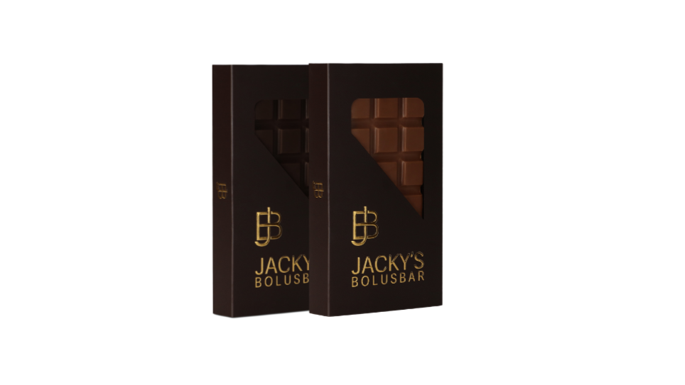 De chocoladereep, gemaakt van de ingewikkelde Callebaut-chocolade en gevuld met een knapperige crème van Zeeuwse bolus. Deze reep is mijn eerbetoon aan mijn moeder Jacqueline, liefdevol bekend als Jacky. Een vrouw die altijd voor mij klaarstaat en een enorme liefde voor chocolade.